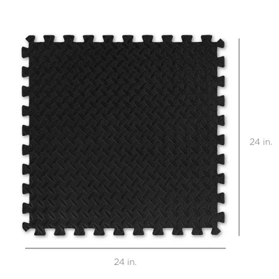 Keep your floors safe from dents and scratches when you work out on a 3/8-inch mat and start your fitness journey with an all-around accessory that lasts. Made with non-toxic EVA foam for a sturdy surface that is safe to use, moisture resistant, and shock absorbent. Lightweight tiles interlock neatly and quickly for a customizable setup, while removable edges allow for a clean look in any room including the garage, home gym, play room, and pet area.