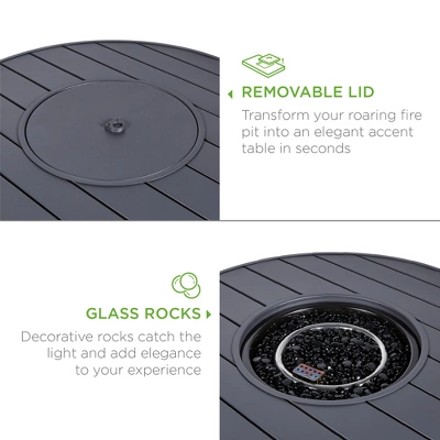 - REMOVABLE LID & GLASS ROCKS: Take off the center lid and ignite an inviting flame over a removable bed of glass beads that trap and disperse heat