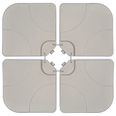 Strike that balance of style and function with a versatile essential for lounging beneath an offset umbrella! This 4-piece offset umbrella base features a classic design: four interconnecting plates lock in place with metal pins to keep your umbrella upright and secure with four pins. A refillable reservoir with easy-to-fill spouts make it a breeze to add sand or water to weigh it down. Each plate can hold sand (38.9 lbs. per plate or 155.6 lbs. total fill capacity) or water (13.2L per plate or 52.8L total fill capacity). Done for the season? Empty the 19.9inx19.9in plates, stack, and store them until the next sunny day! An umbrella is a lot less valuable without the perfect stand to keep it standing tall.