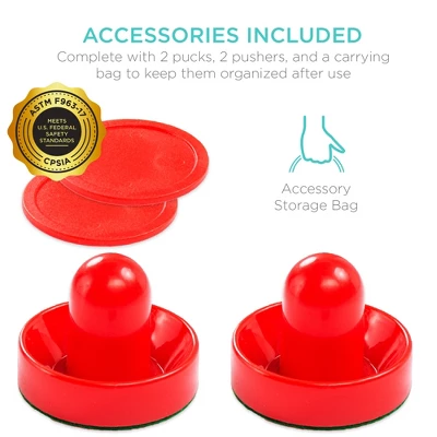 - ACCESSORIES INCLUDED: Complete with 2 red pucks & pushers plus a carrying bag, this set has everything needed to enjoy friendly competition and keep things organized afterward