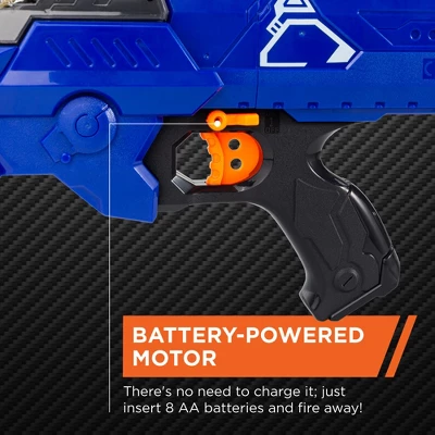 - BATTERY-POWERED MOTOR: Don’t stress taking time to charge, as it uses 8 AA batteries (not included) to power the electric fan launching system and automatically moves ammo into the firing chamber