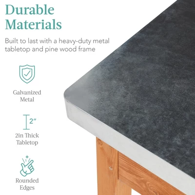 - Durable MaterialsBuilt to last with a heavy-duty metal tabletop and pine wood frameGalvanized Metal2in Thick TabletopRounded Edges