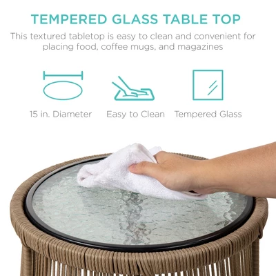 - TEMPERED GLASS TABLE TOP: Elegant matching side table included with a tempered top for easy cleaning so you can set down your plate or coffee mug without staining
