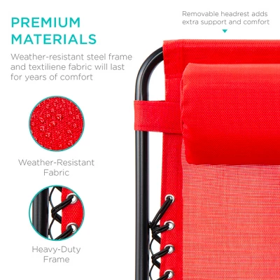 Lie back and relax with the only seat you need! Built with freely adjustable back and footrests so you can find and enjoy the perfect angle (Up to 160 degrees) Get ready to take your chairs anywhere! The compact folding design makes these chairs easy to carry to your next outing, whether that’s camping, the beach, or the park. Keep your favorite drinks and media devices close at hand for uninterrupted relaxation! The detachable holding tray comes with a tablet rest, 2 cup holders, and a phone mount. Premium materials like weather-resistant fabric and a heavy-duty frame make this chair ideal for many trips. Weather-resistant steel frame and textilene fabric will last for years of comfort. A removable headrest adds extra support and comfort. Experience a higher level of comfort with a set of recliners that will turn any spot into your private oasis; it’s just a superior seat.