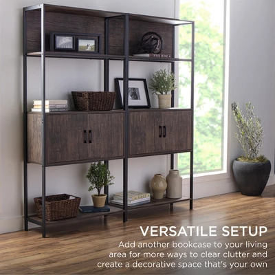 - ENCLOSED STORAGE: Designed with open and closed space for storage, this bookshelf allows you to display fashionable decor while hiding away other items such as books, magazines, and more