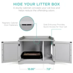 Best Choice Products Large Wooden Cat Litter Box Enclosure, Storage Cabinet Bench Table W/ Magazine Rack